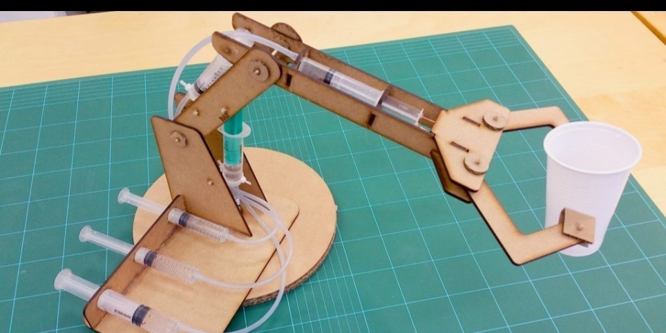 Viens assembler un bras robot découpé dans du bois avec une découpeuse laser. Il fonctionnera grâce à des pistons hydrauliques-seringues ! Tu ramèneras chez toi ce bricolage. Une super expérience pour commencer à comprendre la robotique!