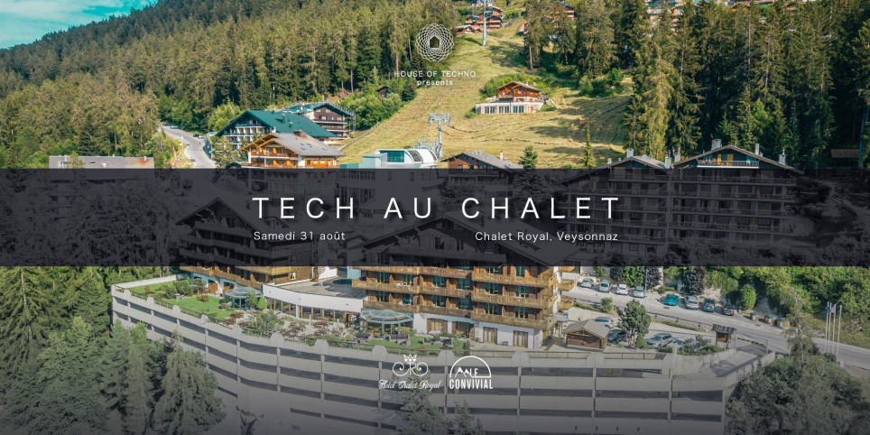 Le Chalet Royal de Veysonnaz et sa Terrasse Panoramique depuis laquelle on distingue presque tous les Villes et Villages Valaisans de Martigny à Loèche ! En Mai 2022, nous avions pour la première fois pris nos Quartiers dans cet Endroit Exceptionnel. Fin Août 2024, plus précisément le 31, nous avons l’Immense Plaisir de vous annoncer que nous reprendrons à Nouveau nos Quartiers au Chalet Royal et que Nous passerons Ensemble une journée dont nous nous rappellerons ! Une Expérience Hôtel en chambre Double avec Vue sur la Fête et sur notre magnifique Canton, avec un petit Déjeuner le lendemain et un Late Checkout, en plus de la Journée qui commencera à 14H et se terminera à l’After Party dans le Lobby de l’Hôtel à 4H du matin. Ça c’est une sacré Expérience ! À la sauce HOUSE OF TECHNO. HOUSE OF TECHNO Presents : TECH AU CHALET Samedi 31 Août 2024 / 14H - 04H DAY - LA TERRASSE - 14H - 22HNIGHT - LE LOBBY - 22H - 04H LE CHALET ROYAL & LE CONVIVIALVEYSONNAZ Line Up TECH AU CHALET : - 14H - 16H : Umbe Nalle- 16H - 18H : Koris de Kūn- 18H - 20H : Jean Sud- 20H - 22H : BLACKCHILD [IT] Line Up TECH AU CHALET : - 22H - 00H : Yvan Genkins- 00H - 02H : Mathew Meness- 02H - 04H : Elichulo - Entrée TECH AU CHALET : 30.- - Entrée TECH AU CHALET + AFTERPARTY : 50.- - [SOLD OUT] Expérience en Chambre Double Vue Fête/Vallée pour 2 Personnes avec Petit-déjeuner inclus, Late checkout et 2 entrées pour la TECH AU CHALET + l’AFTERPARTY : 120.-/par personne - 240.- pour deux personnes. - [SOLD OUT] Expérience en Chambre Double Vue Village pour 2 Personnes avec Petit-déjeuner inclus, Late checkout et 2 entrées pour la TECH AU CHALET + l’AFTERPARTY : 110.-/par personne - 220.- pour deux personnes. - Il n’est pas possible de participer uniquement à l’AFTERPARTY de la TECH AU CHALET. L’AfterParty est réservé aux personnes présentes la Journée. L’Événement et l’AfterParty sont Gratuits pour les membres House Of Techno. Ouverture de l’Événement : 14HRestauration sur place par l’Excellent Restaurant de l’Hôtel, LE CONVIVIAL. 18 Ans révolus, contrôle d'identité à l'entrée.