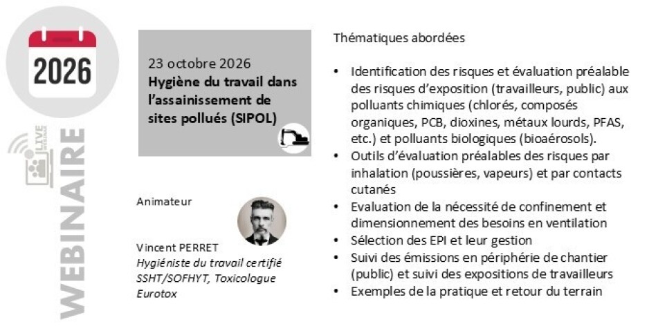 Webinaire TOXpro Academy Hygiène du Travail dans l'assainissement de sites pollués (SIPOL)
