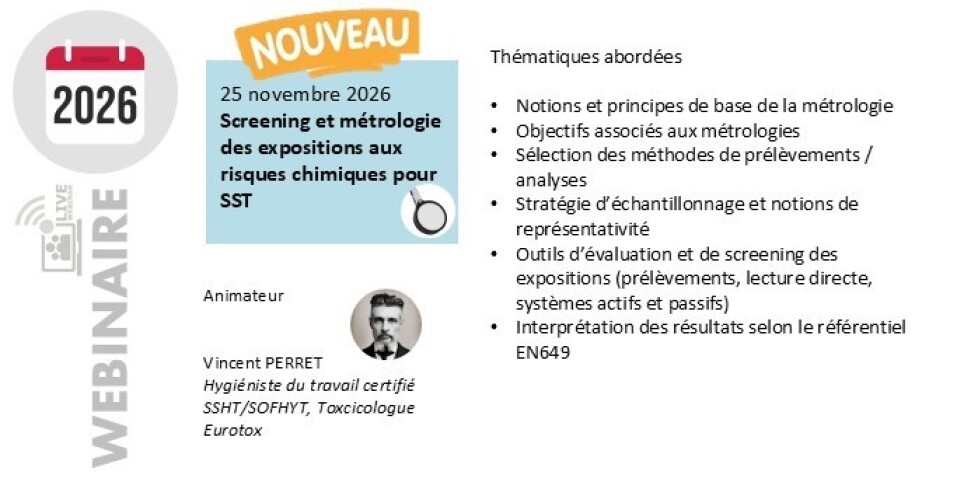 Webinaire TOXpro Academy Screening et métrologie des expositions aux risques chimiques pour SST