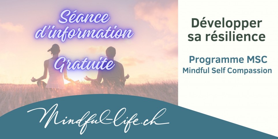 Venez participer à une séance d'information et d'expérimentation du programme MSC (Mindful Self Compassion), la résilience, la bienveillance à soi et l'autocompassion en pleine conscience. Dans cette vie où le stress, les troubles de l'anxiété, la honte, les ruminations et bien d'autres sont omniprésents,il est essentiel de développer sa résilience et son autocompassion en pleine conscience. Chacun possède en lui les germes de la compassion à soi et de la bienveillance. Apprenez à les développer en pleine conscience et augmentez votre résilience psycho-émotionnelle face aux problèmes du quotidien. Séance d'info par OnlineTransformez votre vie !