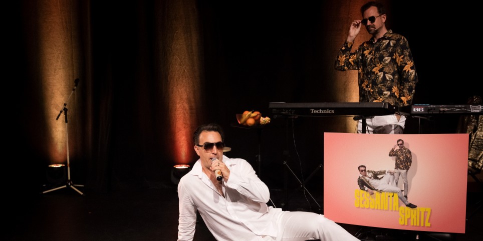Compagnie Comiq’Opéra   Préparez-vous à embarquer dans un voyage rétro et pétillant avec ce spectacle musical et humoristique qui respire l’Italie authentique des années 60. Davide et Mattia, deux musiciens italiens au charme désuet et un peu (voire franchement) has-been, rêvent de retrouver leur petite notoriété d’antan. En tournée sur les plages de la Méditerranée, les voilà qui débarquent près de chez vous ! À travers des reprises vibrantes et une bonne dose d’autodérision, ils font revivre les grands classiques de la chanson italienne, tout en servant leurs cocktails maison, jonglant avec des amplis capricieux et partageant des anecdotes croustillantes quelque peu farfelues, à moins que... ? Avec Sessanta Spritz, laissez-vous emporter par un spectacle plein de charme, d’humour, et de chaleur italienne. Un hommage à la dolce vita, à la quête de la réussite, et à ces petits moments de désordre qui rendent la vie si savoureuse. Chaque maladresse devient une fête, chaque accord un éclat de rire, et chaque verre de Spritz une promesse d’évasion ! Buon divertimento !   Écriture : Davide Autieri, Leana Durney et Simon RomangMise en scène : Leana Durney et Simon RomangJeu : Davide Autieri et Cédric LiardetProduction sonore : Cédric LiardetRéalisation vidéo : Das PlaygroundCréation lumières : Harold WeberCostumes et accessoires : Faustine BrenierConstruction Décor : Gabriel DollatChorégraphie : Florence Annoni