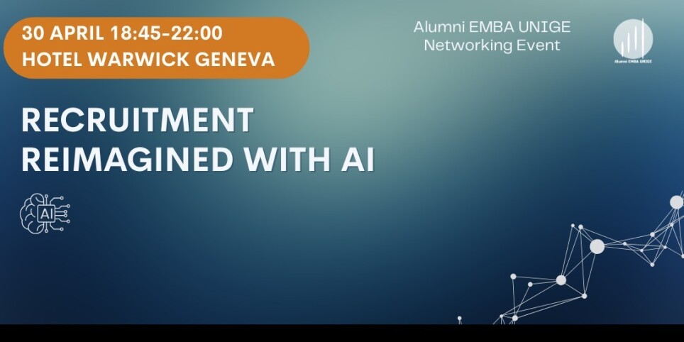 LE RECRUTEMENT REIMAGINE AVEC L'AI Soirée networking Alumni EMBA UNIGEDate : Jeudi 30 Avril 2026, 18h45-22hLieu : Hotel Warwick, Geneva - 14 Rue de Lausanne, 1201 Genève, SuisseAlumni & Etudiant : Conférence et cocktail de networking - 45 CHFNon Alumni : Conférence et cocktail de networking - 60 CHFSur place, les billets se paient cash.Les places sont limitées. Réservez votre billet pour cet événement exclusif dès aujourd'hui !PROGRAMME:18:45-19:15 Accueil des participants19:15-20:15 Conferences20:15-22.00 Cocktail dînatoire et NetworkingChers amis,Nous avons le plaisir de vous inviter au prochain événement Alumni Career Coaching, sur le thème : Le Recrutement Réimaginé avec lAI Comment l'intelligence artificielle transforme-t-elle la manière dont les organisations identifient, attirent et sélectionnent les talents? Rejoignez-nous pour une soirée captivante explorant l'évolution du paysage du recrutement à l'ère de l'IA. Nous vous invitons à participer à une discussion sur la manière dont la technologie transforme les pratiques d'embauche – du filtrage des candidats basé sur les données au rôle croissant de l'IA dans la recherche de cadres et la stratégie de talents. Après les présentations, nous poursuivrons les échanges autour d’un cocktail dînatoire — une belle occasion de discuter avec les intervenants et les autres alumni dans une ambiance conviviale et détendue.L’événement est ouvert à tous, pas uniquement aux Alumni & étudiants MBA — n’hésitez pas à inviter vos amis et collègues intéressés.Au plaisir de vous y retrouver !Avec nos meilleures salutations, Association Alumni EMBA UNIGEVotre EQUIPE organisatrice:Zheng Zhou-Gabrielli, Marzena Lapka, Lone Le Floch-Andersen, Joelle Morlet, Yousri El Antri, Alain SigristContact: events@alumniembaunige.orgAvec le soutient de la:Geneva School of Economics and Management