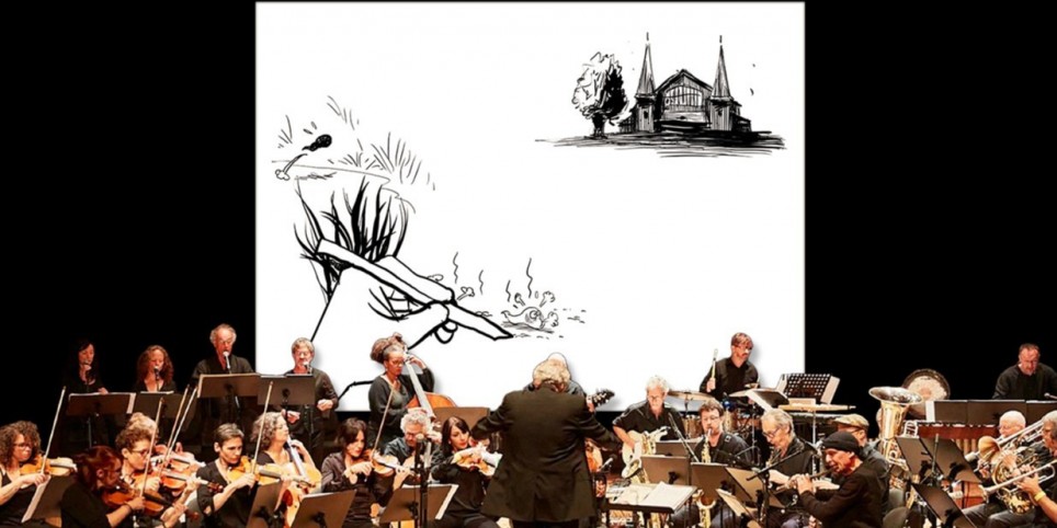 VICTOR Spectacle musical, narratif et visuel commandé à l'occasion des 120 ans du Stand de Moutier et des 20 ans du festival Stand’été. Victor, c’est l’histoire d’un petit têtard et de la destinée improbable d’un bâtiment hors du commun aux vies multiples. C’est aussi le partage d’un credo, d’une vision de la culture et de ses bienfaits sur la société, sur les individus qui la composent, voire même sur celles et ceux qui en sont exclus. C’est surtout la poésie d’un spectacle où musique, dessin et textes sont savoureusement mêlés pour que vous puissiez les déguster, dans une salle majestueuse qui a déjà abrité tant d’instants magiques ! Musique et livret : Alain Tissot Narrateur, chanteur : Thierry Romanens Dessinateur en direct : Pitch Comment Orchestre : Le Grand Eustache (25 musiciens) Direction musicale : Philippe Krüttli Scénographie, regard extérieur : Caroline Tedesco Création lumière : Gaspard Matile Projection vidéo : Guillaume Lachat Son : Claude Kamber Sur une idée de Michel Zbinden