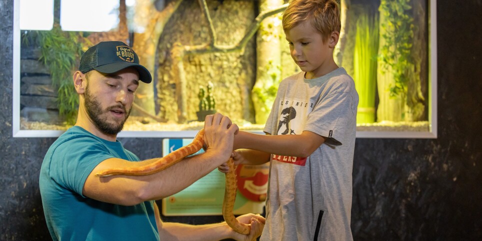 À la découverte des animaux magiques Cet atelier permet aux enfants de faire la connaissance de petits mammifères attachants, d’étranges insectes, de reptiles déroutants et d’autres spécimens insolites. Le soigneur des animaux se fera un plaisir de faire découvrir aux enfants ce monde magique de manière ludique et interactive. Âge : 6 - 12 ans Horaire : 13h30 à 14h30 Nous vous donnons rendez-vous, muni de votre justificatif vers l'Arbre "Point rencontre" à côté de l'entrée du restaurant. L’atelier a lieu par tous les temps, nous vous prions d’habiller l’enfant en fonction de la météo.