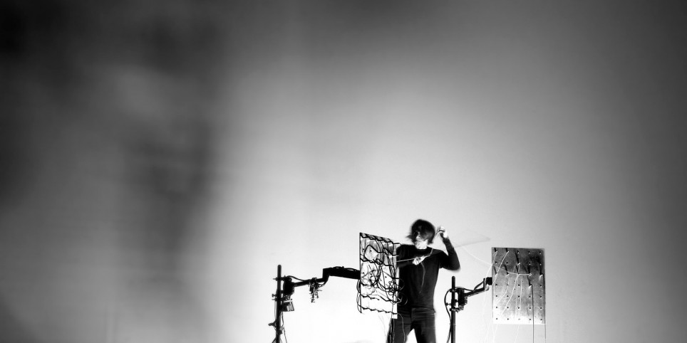 Soirée d’ouverture du festival. Au fil des minutes, la tente prendra vie dans une ambiance de lumineuse et sonore faite d’illusions d’optiques et d’effets spéciaux. La musique, présente en permanence et résolument électronique, fera corps avec la performance visuelle. Bien plus qu’un spectacle de lumières, c’est une immersion multi-dimensionnelle et sensorielle que nous vivrons lors de ce spectacle. 20:00 Martin Messier - Echo Chamber, Elusive Matter, IMPULSE – Performances et installation lumineuses et sonores L'artiste part du principe que des sons peuvent être générés à partir des champs électromagnétiques omniprésents dans l’environnement. Sur scène, Martin Messier interagit avec deux panneaux d’aluminium dotés de multiples patchs dont les entrées et les sorties sont interconnectées. La composition sonore et lumineuse émerge par un mouvement continu de branchement et de débranchement entre les panneaux – les possibilités sont infinies. Par ses gestes performatifs, Martin improvise des configurations audiovisuelles qui sont similaires mais jamais exactement identiques. Les variations entre le flux électromagnétique ambiant et les connexions effectuées par l’artiste génèrent un effet de fluctuation d’une performance à l’autre – fluctuation qui constitue la constante de l’œuvre. Avec ses performances, Messier matérialise ce flux autrement inaudible et invisible. Il devient l’opérateur par lequel l’œuvre est activée et amenée dans le monde réel. Véritable mimésis du courant électromagnétique, l’aspect visuel peut plonger le public dans un état hypnotique : la puissance omniprésente et imperceptible qui nous entoure est ici dépouillée de son mystère et nous semble enfin accessible. Notons enfin qu'en plus de ses performances, l'artiste présentera son installation IMPULSE qui sera visible durant tout le festival sous la tente Usinesonore. *Membres Usinesonore, jeunes (12-25 ans), AI, prix solidaire.