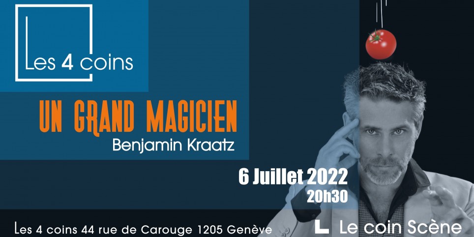 Benjamin Kraatz présente son nouveau spectacle de magie comique.   Pour toute la famille: du rire et du rêve! ******************************************************* Ouverture des portes à 20h15.Spectacle à 20h30. ******************************************************* Boissons et restaurations au bar Les 4 Coins.