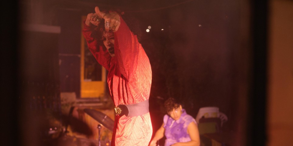 En osmose avec le public, une danseuse et un batteur insatiables se lancent corps et âme dans une transe sur-vitaminée. Le duo invite à partager joyeusement l’espace de jeu dans cette performance festive.
