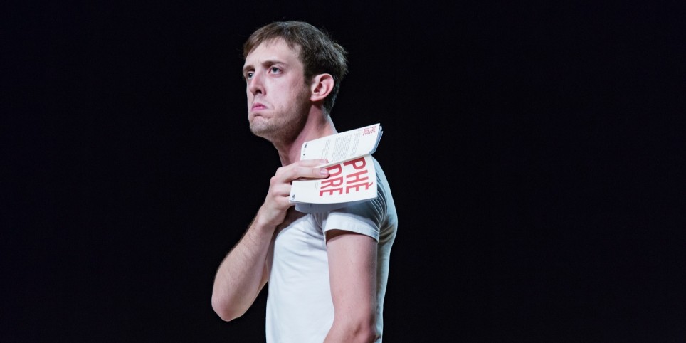 PHÈDRE ! Texte François Gremaud, d'après Jean Racine / jeu Romain Daroles Dès 15 ansDurée : 105' ___ Phèdre ! La plus fameuse et plus jouée des tragédies de Racine ! Enfin… pas uniquement. Derrière ce point d’exclamation se cache avant tout la passion d’un jeune homme pour les mots de Racine. Seul en scène, en t-shirt, jeans et baskets, Romain Daroles se métamorphose en professeur aussi éloquent que drolatique. Il explore, résume et scrute la pièce de Racine. En perpétuelle digression, il nous fait entendre la beauté de ses alexandrins, nous transporte dans ses passions dévastatrices, revisite les origines mythologiques de ses personnages, revient sur son contexte historique, cite à propos Barbara et Dalida. Emporté par sa propre fougue, il va jusqu’à interpréter tous les rôles de la tragédie avec pour seul accessoire, un petit livre en main. Un solo jubilatoire, instructif et déjanté, joué plus de 400 fois à travers l’Europe !