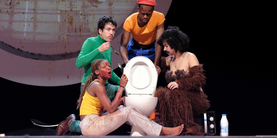 Rébecca Chaillon s’adresse à son adolescence, à nos adolescences. Enfermé.e.s dans un monde et un corps qui change, l’absence d’outil définit nos batailles. C’est à travers le spectre de la non résilience que la metteuse en scène nous offre ces précieux outils pour comprendre, comprendre ce qu’est ce corps individuel et collectif qui mute sans crier gare. Vomir c’est oublier sa tête pour respecter ses tripes, le rejet viscéral d’un ordre établi que l’on ne sait appréhender mais que l’on doit exclure. L’intime en tempête pose les questions qui fâchent et fonde les bases d’une envolée fracassante et réparatrice.